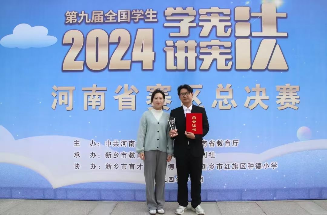 近日,中共河南省委教育工委和河南省教育厅联合主办第九届全国员工“学宪法 讲宪法”河南赛区总决赛圆满结束。公司2021级法学1班员工刘阐中在河南赛区法治素养竞赛总决赛中以显著优势夺得高校组第一名,成功入围全国总决赛。这是公司在法治校园创建中取得的新成果,实现的新突破。