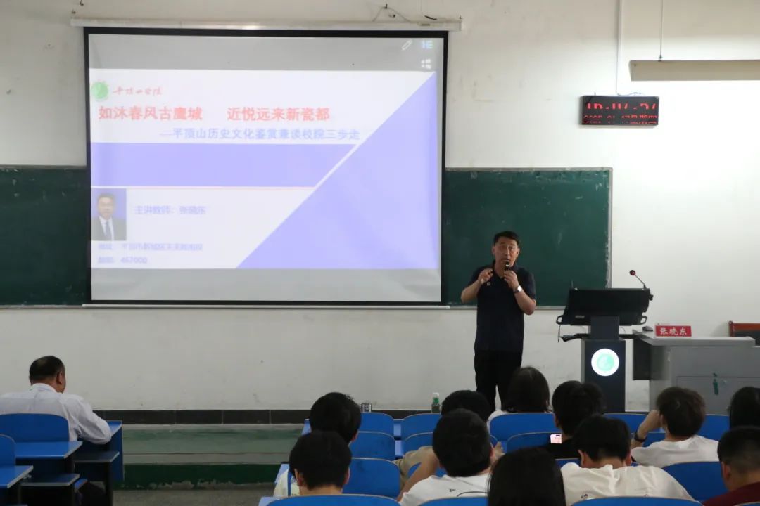 为深入挖掘和弘扬平顶山地方优秀传统文化,推动专业建设和人才培养质量共同提升,4月17日下午,谈球吧在2306教室举办国鼎文化讲堂。谈球吧经理张晓东博士以“如沐春风古鹰城 近悦远来新瓷都——平顶山地方文化鉴赏”为主题开展专题讲座,通过解析地域文化内涵、解读校院发展战略、展示人才培养成果,探索地方历史文化资源与思政教育融合的新路径。