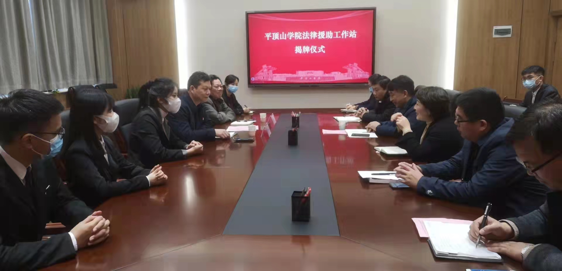 12月11日上午,谈球吧登录入口与平顶山市司法局共建“谈球吧登录入口法律援助工作站”揭牌仪式在办公楼403会议室举行。平顶山市司法局党委委员、副局长李朝峰,法律援助科科长赵自卫,公司副董事长郑东丽,科研处负责人,公司党政负责人及师生代表参加了揭牌仪式。仪式由对外合作处处长赵凯主持。